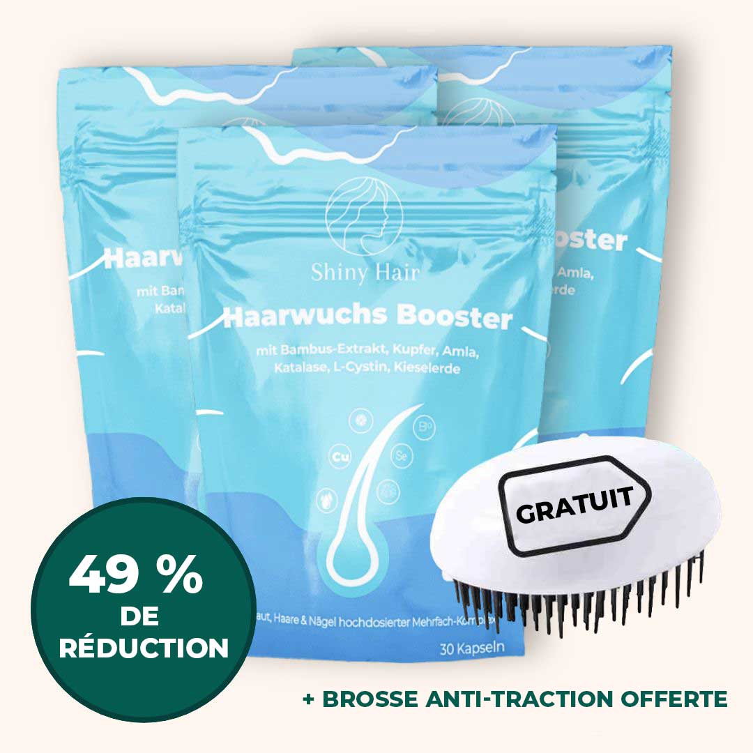 Et ce n’est pas tout : pour toute commande du pack 3 mois, tu reçois gratuitement une brosse anti-nœuds spécialement conçue pour les cheveux longs.